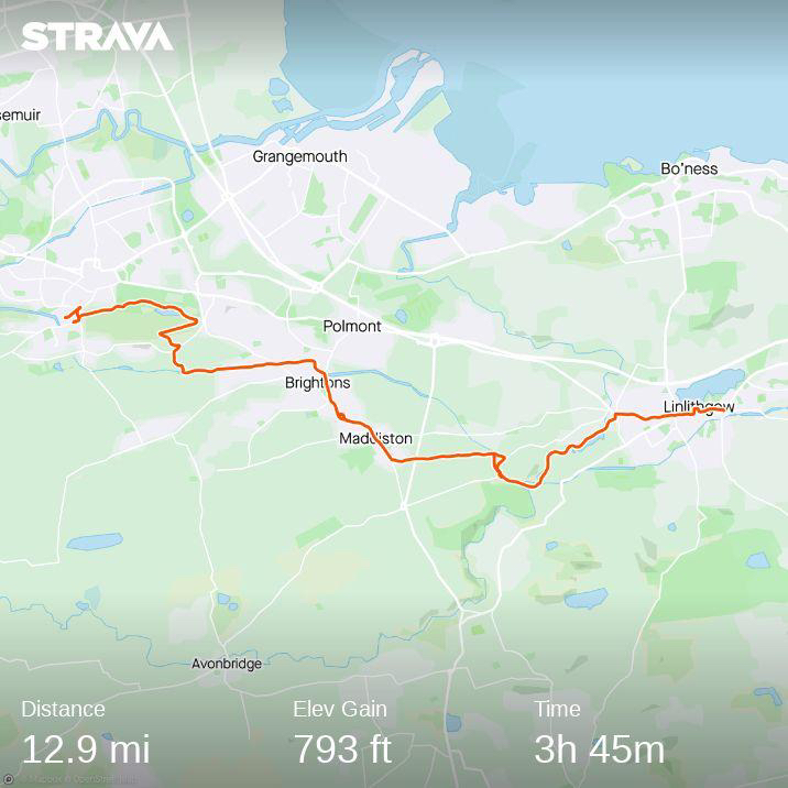 One of the day’s highlights was coming out of Falkirk and lifting my head to see the Forth Bridges in the distance. Couldn’t quite believe I’d made it that far. Not so much of a highlight was coming off the Union Canal on to a diversion around Polmont, ending up back on the Union Canal and walking in the wrong direction.