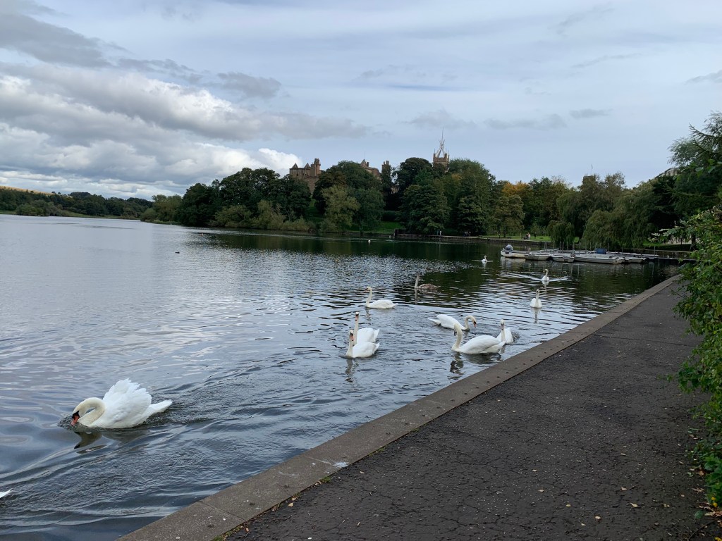 After walking in circles around the station for the first 10 minutes, I finally found my way out of Falkirk and into Callendar park. It was another beautiful morning and I had no idea Callendar park was so picturesque. Not sure what the real swans made of the fake ones though…