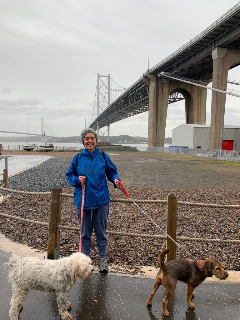 With Bella, Raymond and one of my oldest, dearest friends in tow we set off. Was great to see the bridges from a different angle to the one I’m used to – looking back up the Firth of Forth from the West. The grounds of Dalmeny House have a fair amount going on – a 9 hole golf course, a massive unit for what looked like a film shoot and lots of lovely buildings dotted across the estate. Then a short hop back inland to the Cramond Brig.