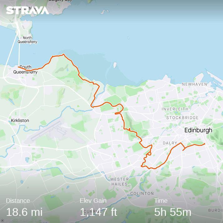 Was a walk with lots of memories and things I’d never seen before. From the Cramond Brig (which I always thought was just the name of a pub but actually refers to the historic bridge at the back of it), through the back roads of Barnton (which I’ve never nosed around before), up and over Corstorphine Hill (used to come sledging here) and down the other side past the Zebras in the zoo (they looked sad). Then it was down past a very silent Murrayfield Stadium to Saughton Park for a peer through the fence at the old Edinburgh Athletic Club running track where Graeme, dad and I spent years running in circles. Then a climb up on to the Slateford Aqueduct (2 aqueducts in a week and one in the middle of Edinburgh – who knew) and along the Union Canal to Fountainbridge. Across Bruntsfield and through the Meadows (past the back of the Castle and Simpsons where I was born) to Hope Park Crescent and our old front door.
