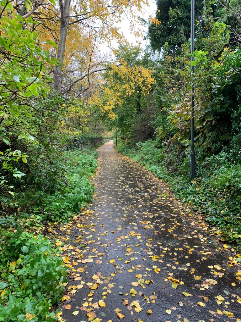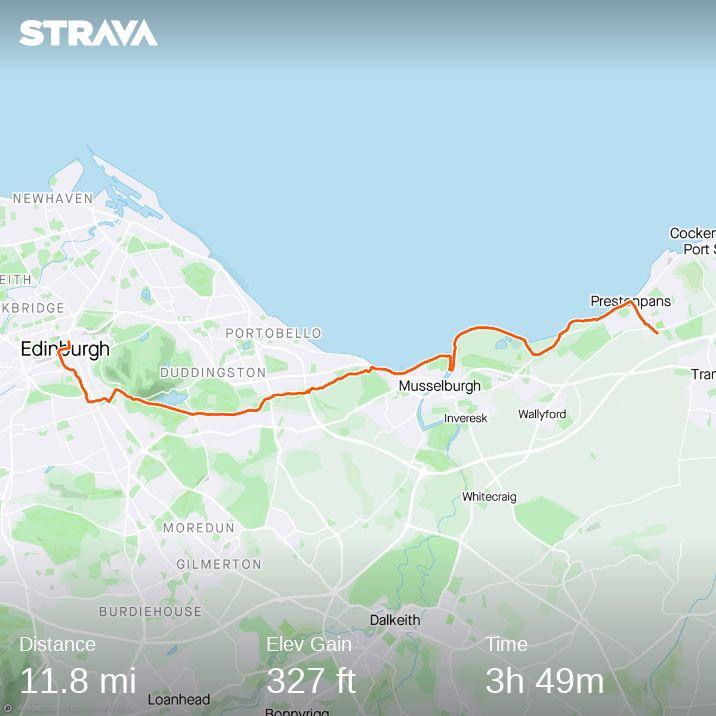 Then to somewhere new. Tucked away down an unassuming opening is the Innocent Railway path (so called because the trains were originally pulled by horses) – Edinburgh’s first railway line and the UK’s first underground railway line. Every day’s a school day. The pathway provided shelter from the rain as we made our way out of Edinburgh into East Lothian on to the shores of Musselburgh (which I never normally see as I am stuck in traffic on the High Street).