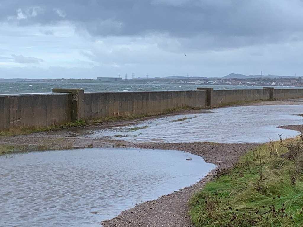 The two Shirleys in my life came along today. And Shirley NB was with me from start to finish, sharing the battering from the sea, wind and rain as we walked the final stretch into Prestonpans. After a cold, wet wait for the train we made it home. I felt pretty much like Bella looked.