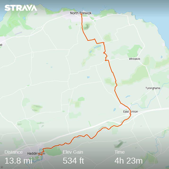 After a short stop in East Linton it was back up the John Muir Way to home. North Berwick Law looking beautiful in the afternoon sun.