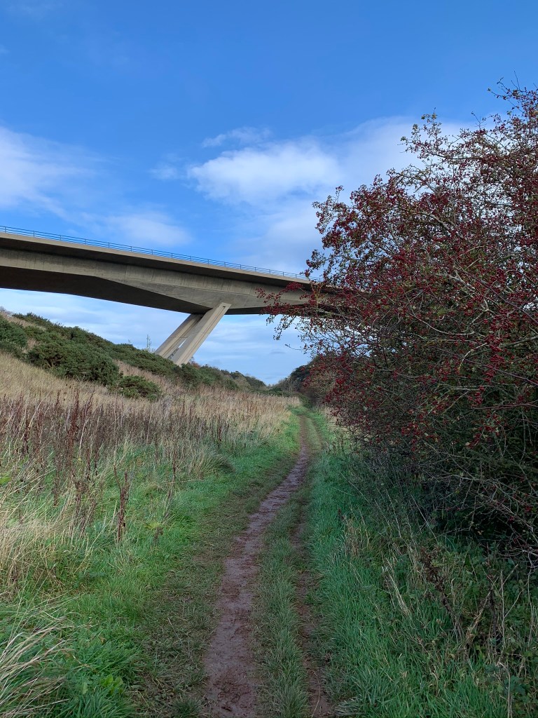 I headed off down the Tyne (hard to get Gazza out my head when I type that) to East Linton. The ruins of Hailes Castle were a dramatic interruption but not as much as the sight of the A1 crossing above my head. Was an interesting feeling standing by a river with nobody around underneath one of the busiest roads in Scotland. Pretty powerful juxtaposition of the bridge and nature.