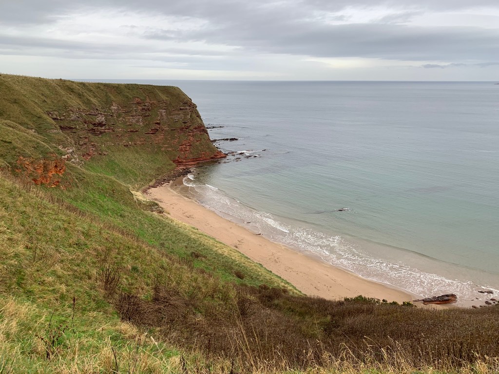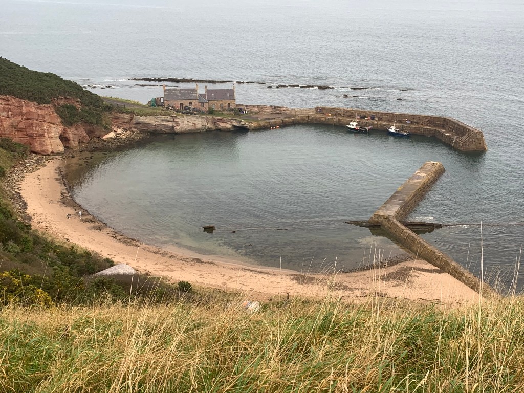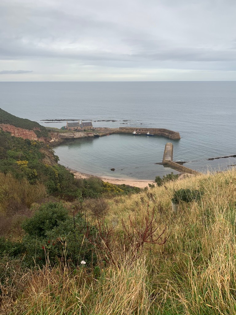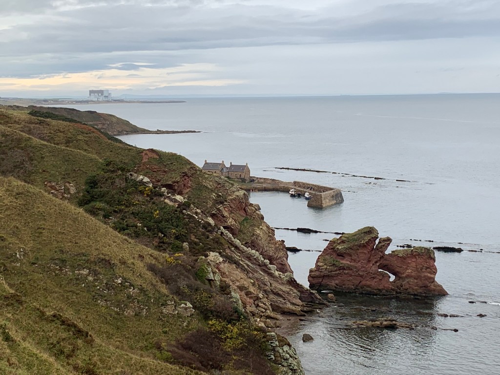 This route runs down the amazing coastline you can see from a distance when you travel on the train south. Starting in Cockburnspath we headed straight out to the sea. The first view was of Cove Harbour which looks like an illustration of a harbour from a child’s picture book. Then we were off for a slide along the cliff tops trying not to imagine falling head first on to the rocks below.