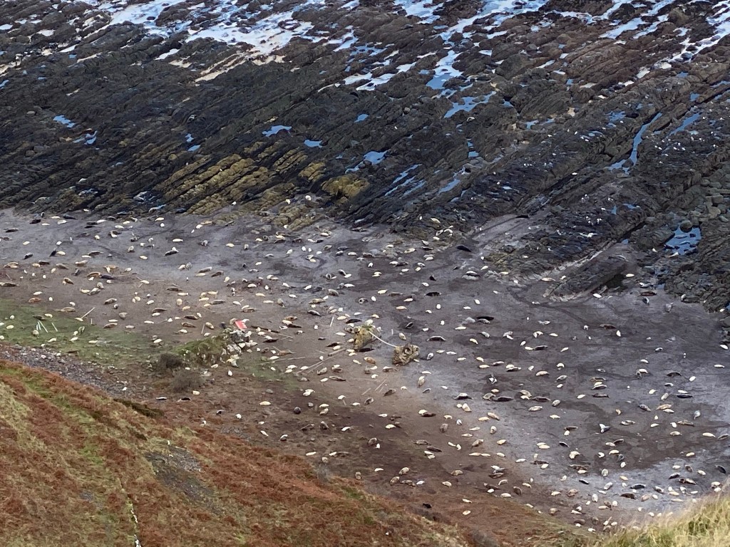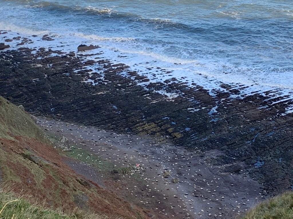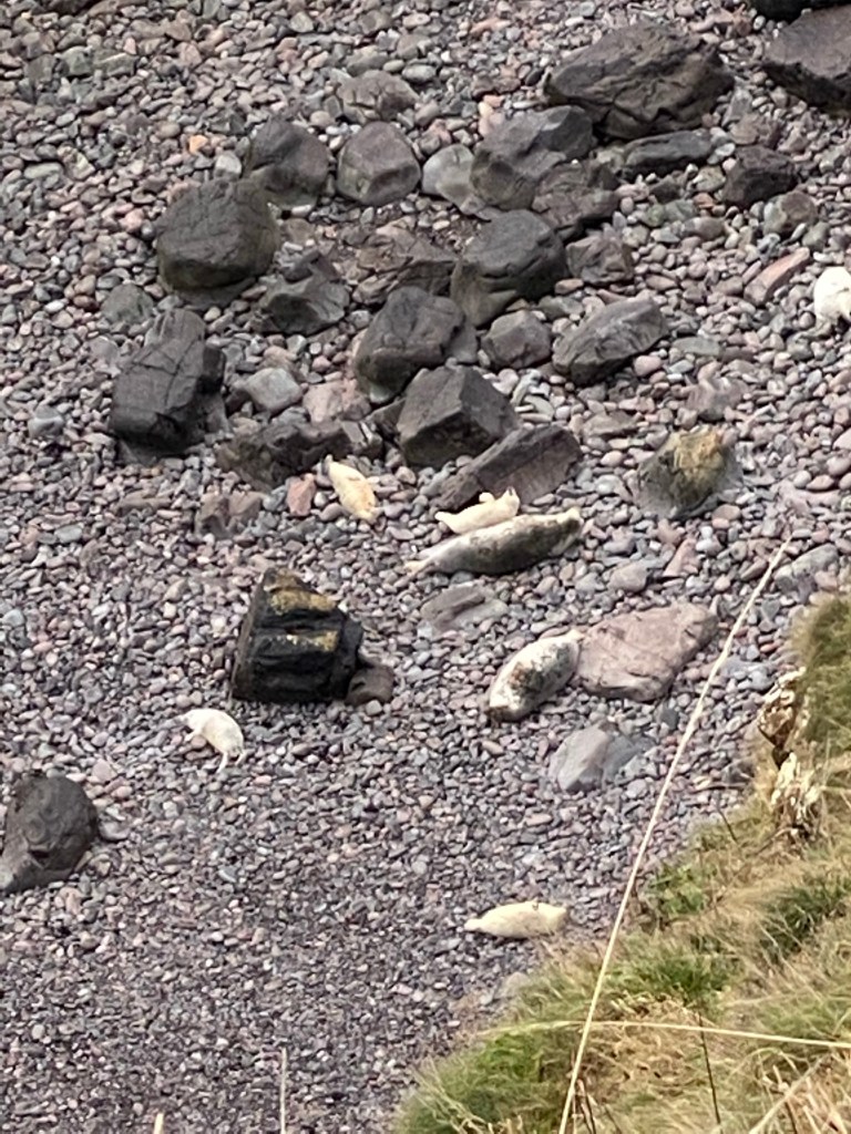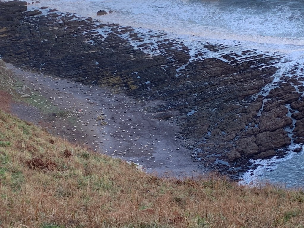Winter has arrived. With a chill wind blowing and the sun sitting low on the horizon line, we set off back towards the coastal path. On hitting the cliff tops we stopped to look at the beach below. I peered down but couldn’t quite work out what I was looking at – hundreds of little white dashes all over the sand … seals … mother seals, baby seals, daddy seals … lots and lots of them. Turns out it’s breeding season. The beach they were gathered on was protected on both sides and behind by huge cliffs so definitely a good spot for seal shenanigans.