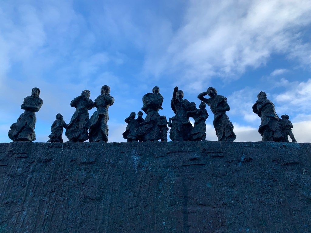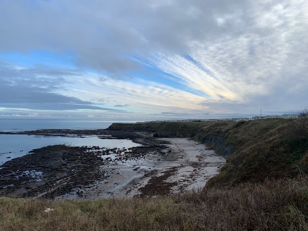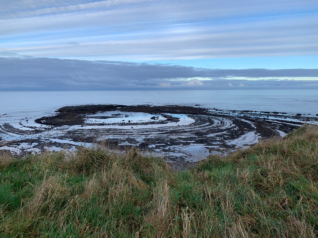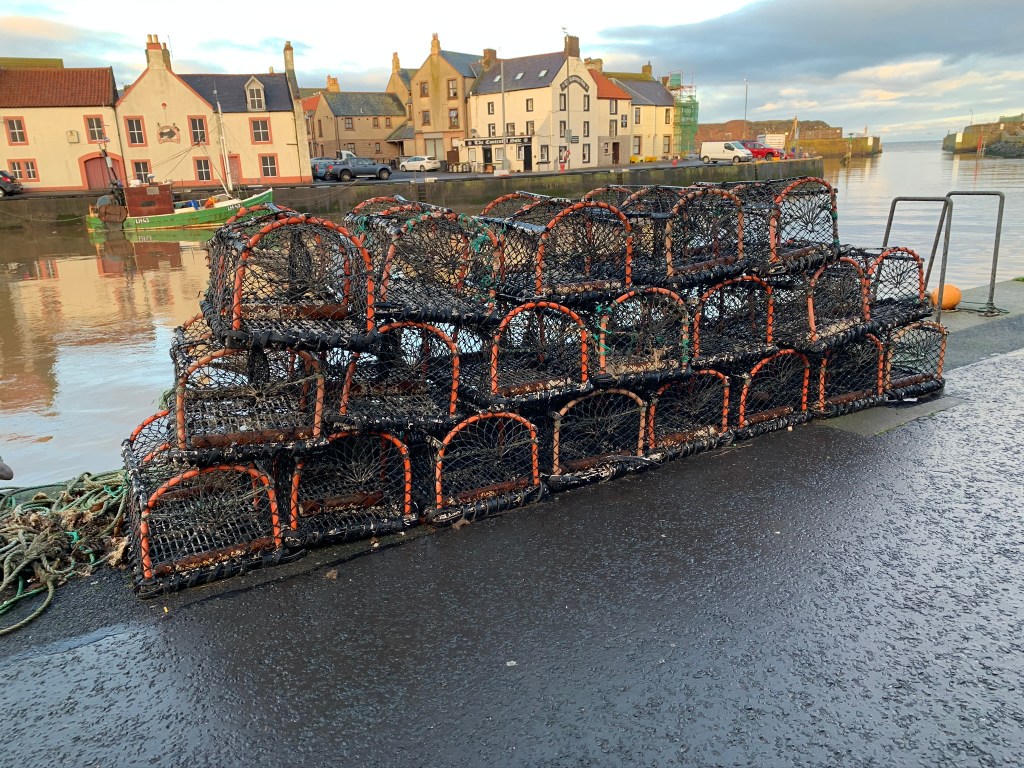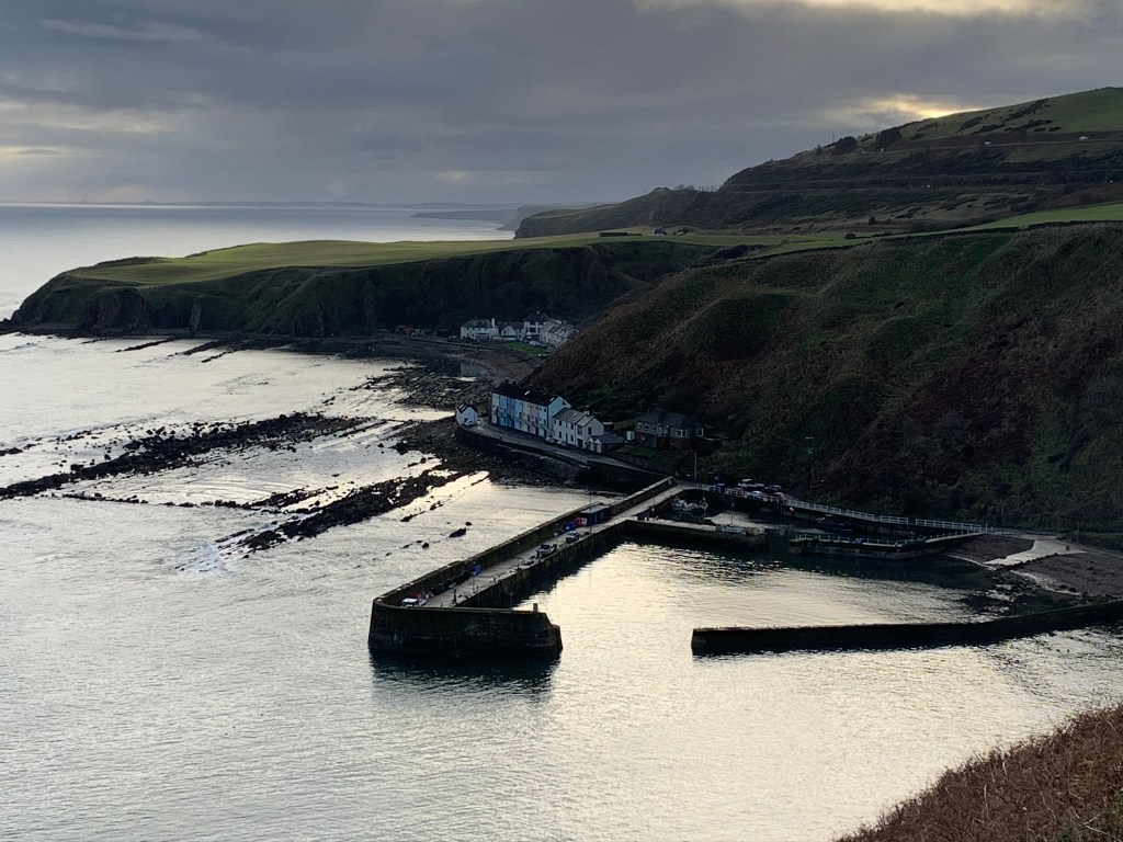 Burnmouth was the first village we came to and the last village in Scotland before crossing into England. Tucked away out of sight, it’s accessed down a steep slope to the beach. A beautiful little harbour with a small but powerful sculpture of women and children waiting for the fishermen who never came home during the great storm in 1881.