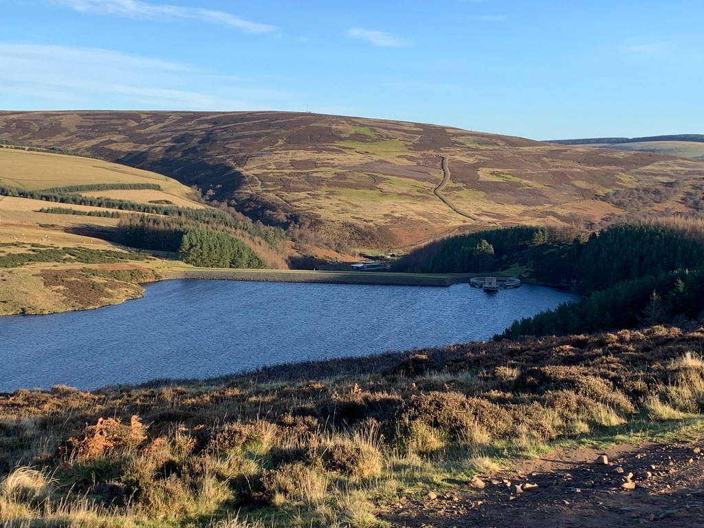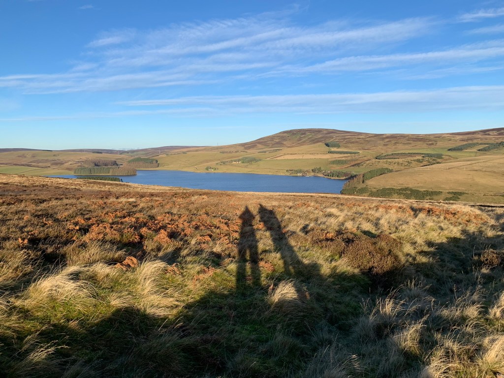 Parking at Whiteadder Reservoir, we headed off up the old Herring Road – the route the fisherwomen of Dunbar used to take to carry their fish to market over into the Borders. The road wiggled up the side of the hills until we reached the crest of Priestlaw Hill with views back down across the reservoir. Then it was back down again and round edges of the reservoir, past Priestlaw Farm and some interesting coloured sheep.