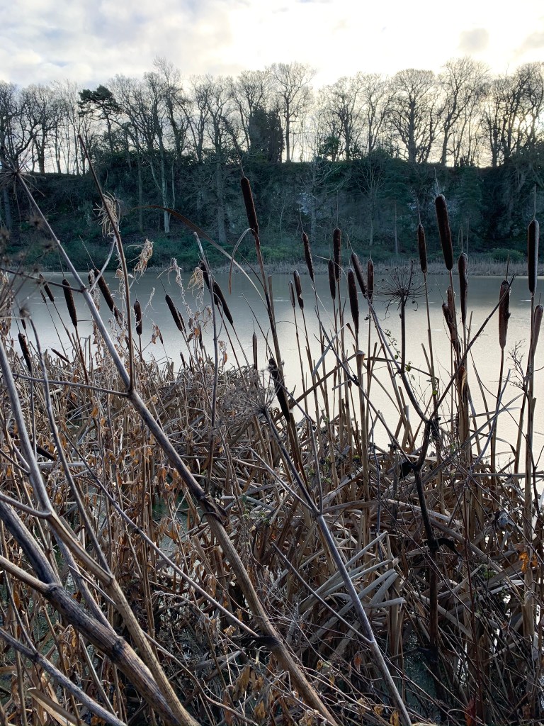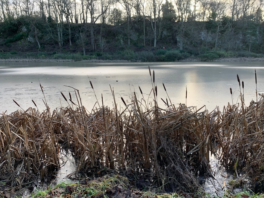 The end of the first week of January. This time I stepped outside the front door and headed South. Up and around the back of the Law and down to the Balgone Estate. It’s a beautiful place in the autumn when the Bulrush (otherwise known as Punks in the US) shed their pollen. Today they were bare and set against the iced over lakes. I can understand the desire to step out on to the ice as it was very tempting (it’s definitely some primal instinct) but the brain cells kicked in and we threw a few sticks instead and carried on walking.