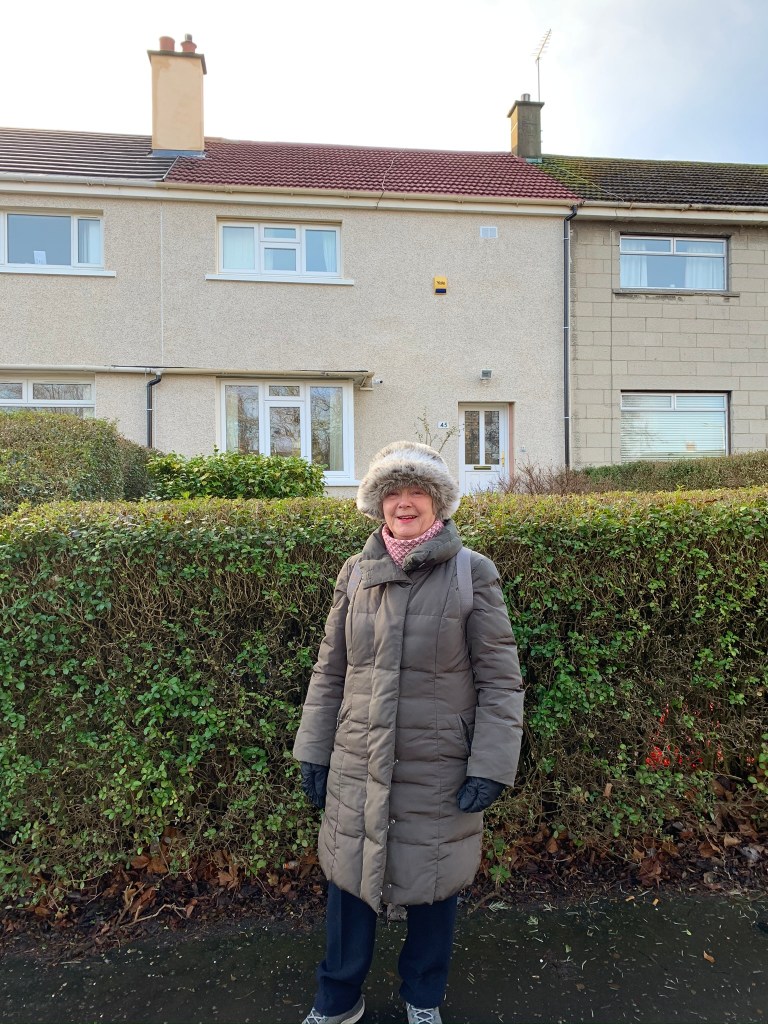 A walk with Granny. And our start point was the house she grew up in at 45 Rankin Drive. Where I spent many years playing on the back green with my cousins, going to Blackford Pond to feed the ducks, plunking on the piano, watching grandad playing the fiddle and sleeping in the big bed with nana listening to the ticking clock. The house seemed so huge then.