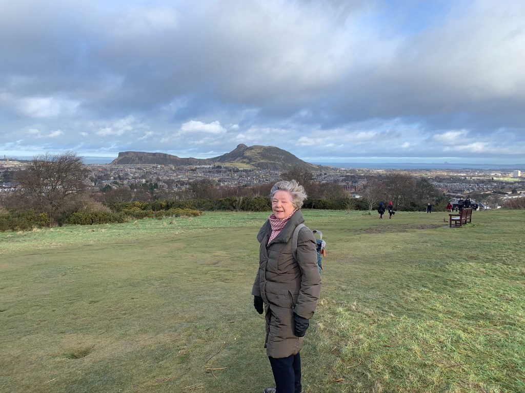 We headed along Rankin Drive with mum’s running commentary of all the neighbours names to the far end of The Hermitage. Then back along to the base of Blackford Hill. As we climbed to the top and came over the brow of the hill, I think we were both a little emotional. Glorious, glorious Edinburgh laid out in front of us. And the best view of Arthur’s Seat. We stood for a moment to take it in.
