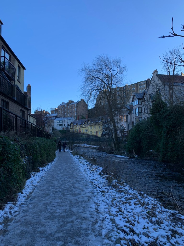 Another icy walk but Gran had her yaktrax on so off we set. Down to the Water of Leith from the Modern Art Gallery. I walked the Water of Leith in the autumn last year but was so busy peering at Antony Gormlay’s sculpture of a man (one of 6 to be installed along the length of the Water of Leith), that I missed the beautiful engravings about grief. Maybe I was supposed to miss them as that meant that I read them for the first time with my mum.