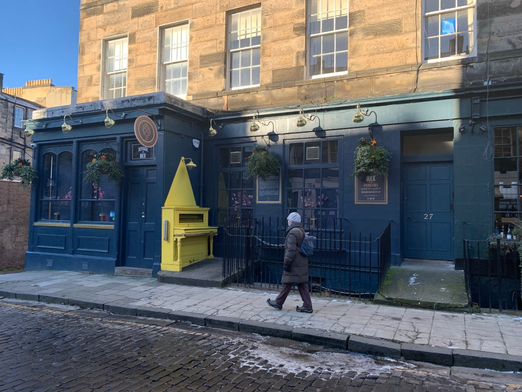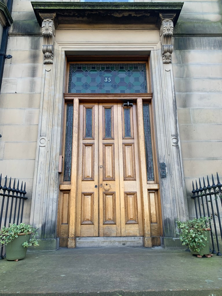 So we walked to Dean Village and talked about the night my mum and dad danced at a ceilidh amongst the washing poles in the village courtyard. Then headed along St Stephen’s Street and up to the New Town. It was lovely to take the time to look at the buildings, windows and doorways. And to appreciate the space – the width of streets, the size of the gardens, the height of the houses. Money = space.