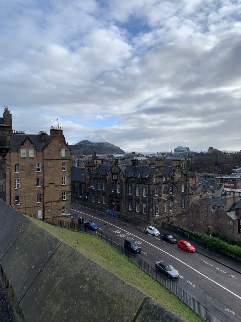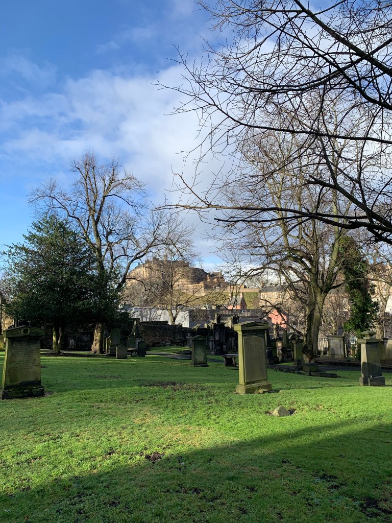 We started with a walk across the Meadows and a visit to Greyfriars Kirkyard – final resting place of John Gray where Greyfriars Bobby sat for 14 years. Some pretty impressive grave stones/mausoleums. Before heading down into the bowels of the Grassmarket where all was quiet. We said a quick hello to Graeme’s first flat at Cordiner’s Land before heading to the Castle Esplanade and a view over the rooftops.
