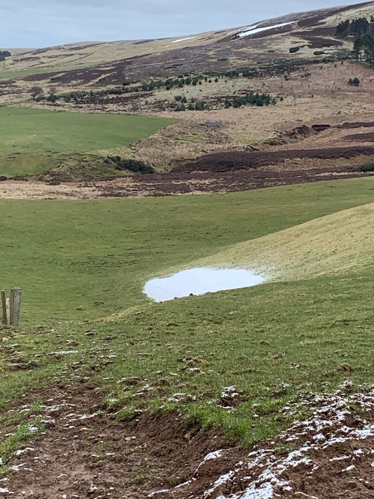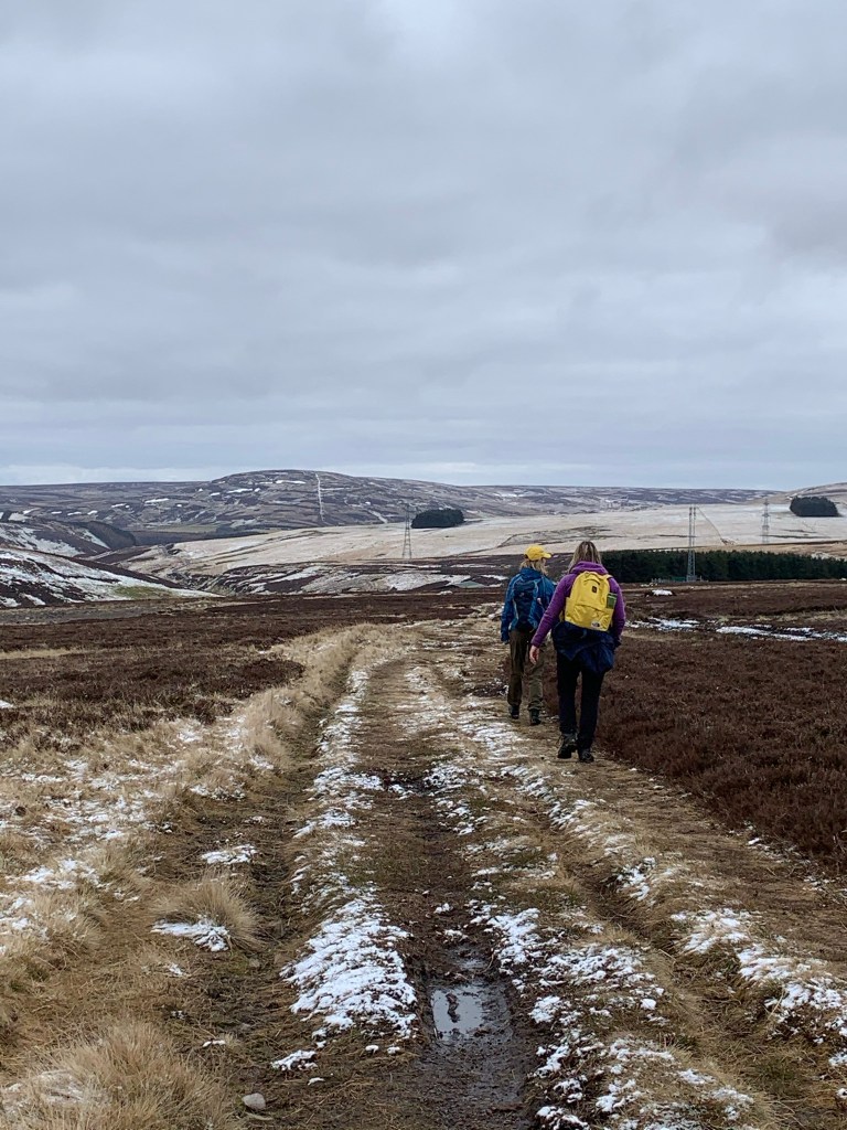 What a difference the weather makes. With the final traces of snow on the ground it took us 30 minutes to travel what took us around 2 hours the last time. It was an eerily still day with not a trace of wind, the sky was low and cloudy and the landscape vast and sprawling. It felt reflective of our general state of mind at the moment – flat, low and seemingly endless.