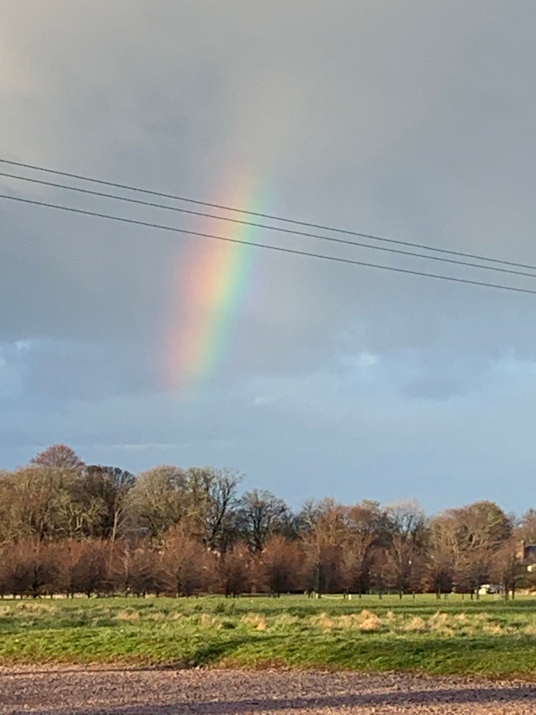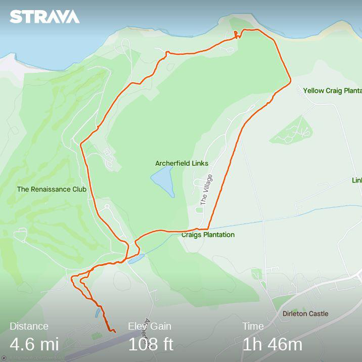 We kept on the main road down and had a good neb around the James Bond style houses at King’s Cairn before looping back up around the near deserted golf course and past Archerfield House. It was a route of full of homes – from fairy houses to children’s play houses, spanking new million pound homes to Churchill’s holiday home so it felt good to finish with a rainbow over the place we’ve made our home, North Berwick.
