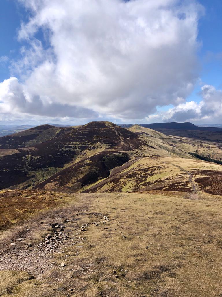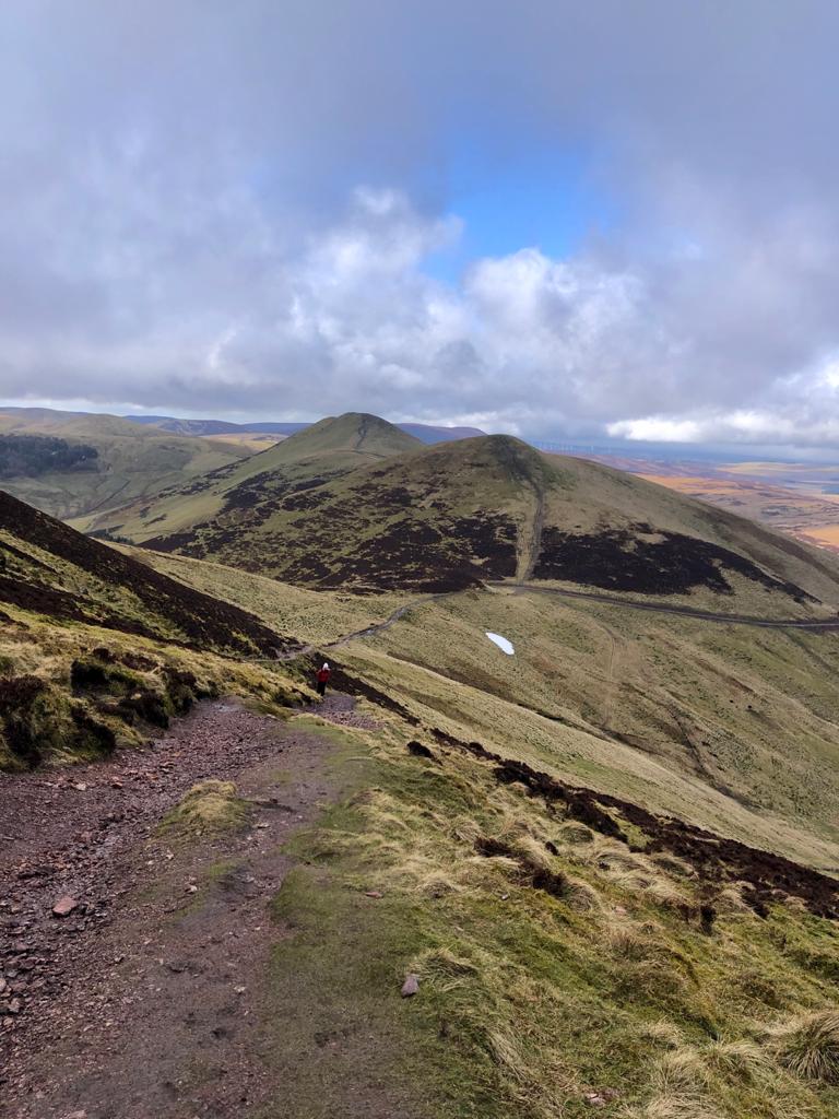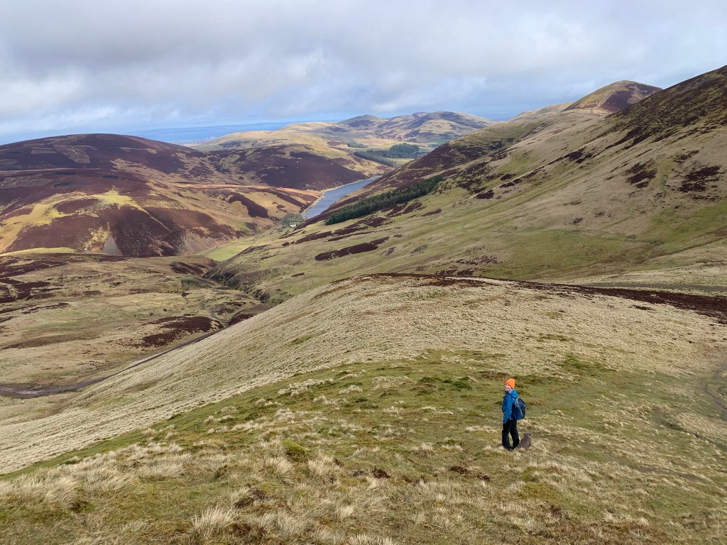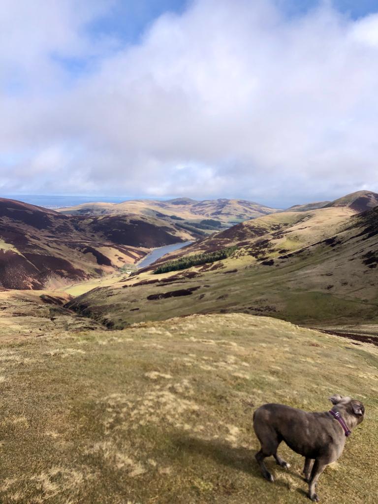 This route had been percolating in my head for a few weeks. Having discovered/rediscovered (I must have been here at some point when I was a child!) the Pentland Hills recently, the ridge walk across the top of some of the highest points has been beckoning. The weather was borderline and the day started with strong winds and some sideways hail/snow. But with some sage advice from my trusted mountain friend and her dog, we headed off with the wind at our back.