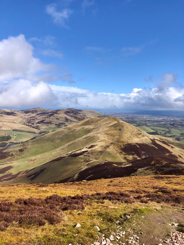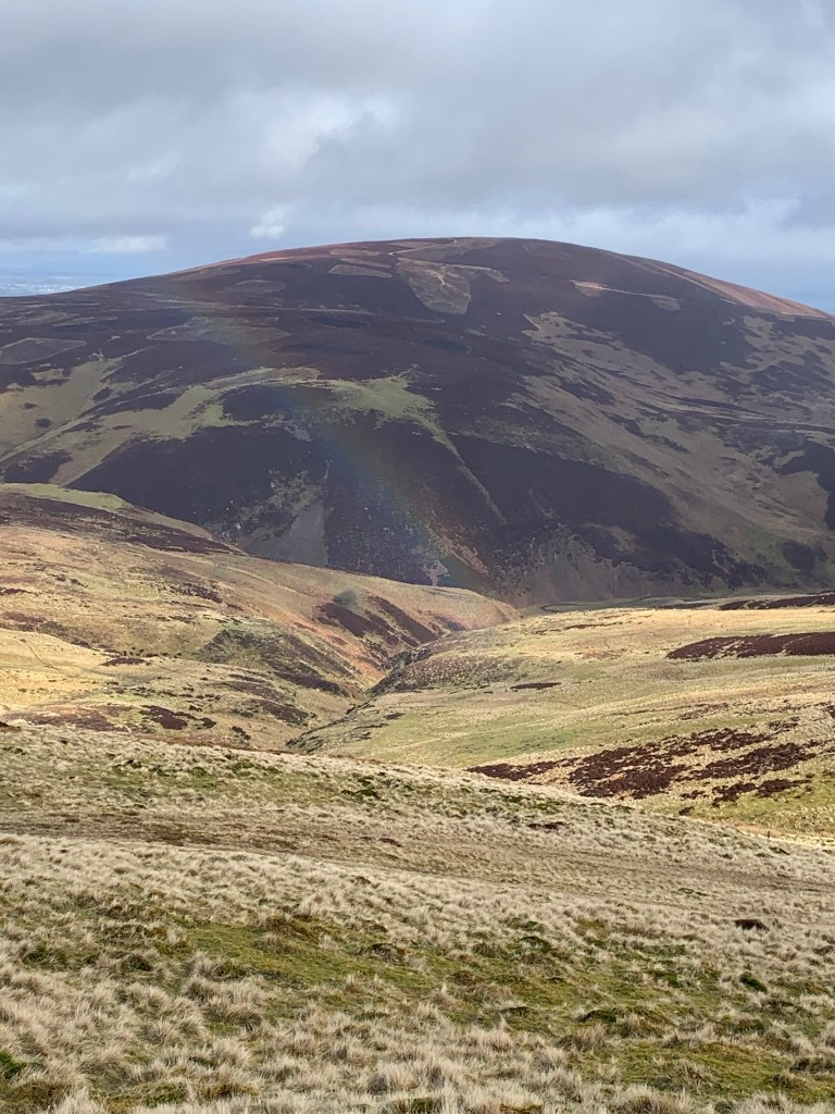 By this point a rainbow had appeared, the sky had begun to crack open and the views down to Glencorse and Loganlee Reservoir below had opened up. So we decided to push on and finish the full 5 hilltops to include Carnethy Hill and Turnhouse Hill at the furthest end. What we hadn’t quite accounted for was the walk back down to ground level which took us further away from our start point with every step. We were almost at Flotterstone car park by the time we could turn around and head back West.