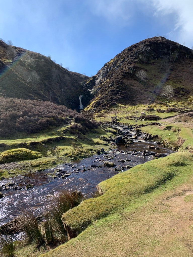 It was an easy amble back along the reservoirs although by this time my legs were becoming wearier and the full frontal of the wind tunnelling up the valley didn’t help matters. Respite came in the final part of the route through a beautiful little narrow passageway alongside a stream and waterfall. A beautiful way to finish a classic Scottish ‘4 seasons in one day’.