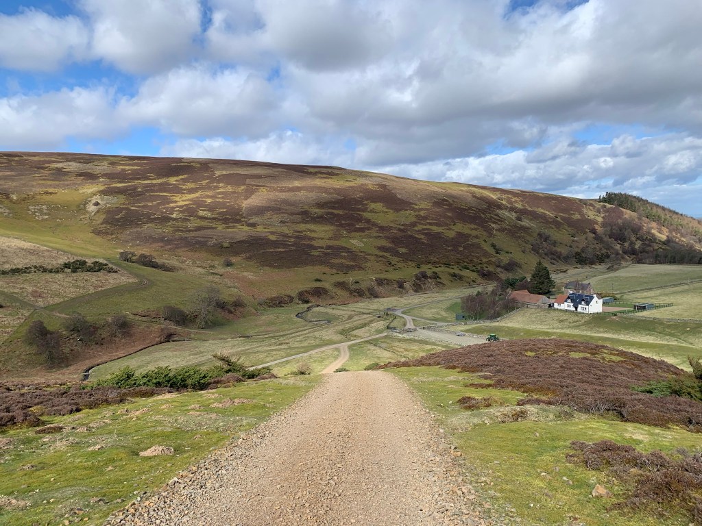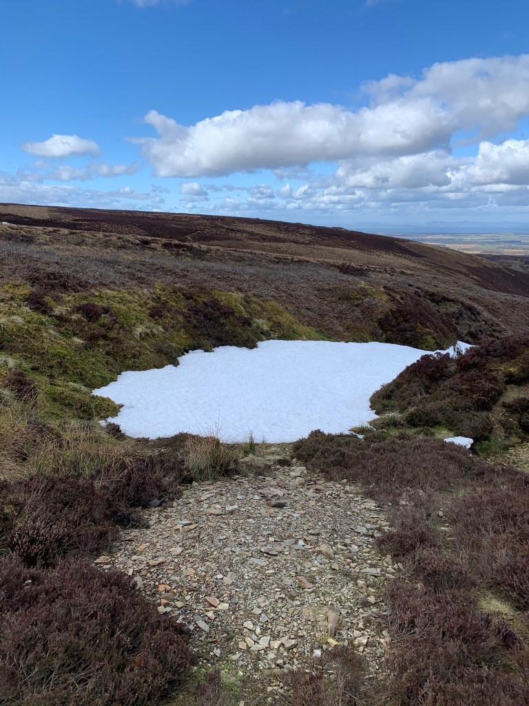 The route then dipped around to the back of Hope Hills where the wind dropped. As much as the season has definitely moved into spring, there was still snow to be seen. The path meandered back down a more continuous gradient in a loop to the beginning, past the beautifully manicured gardens of Hopes House. And back up the long road where I was rewarded with the sight of a flock of lambs literally gamboling in the sunshine.