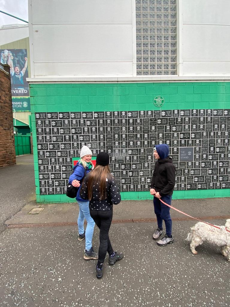 We took our final walk today, on my dad’s birthday. Starting from Leslie’s Bar where he enjoyed a pint after work, to the Meadows and our first family home, around Arthur’s Seat to Abbeyhill where he grew up and down Easter Road to our final destination, the home of his beloved Hibees.